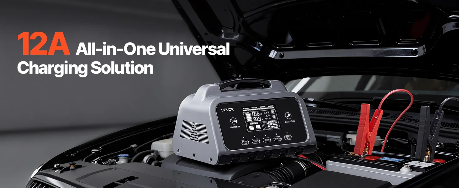 12A Battery Charger: This smart battery charger supports 6V/12V/24V/36V/48V lead-acid batteries (Wet/Gel/MF/CA/EFB/AGM/Calcium) and 12V/24V/36V/48V LiFePO4 batteries. Up to 12A output with adjustable voltage/current, plus Professional Mode for non-standard batteries