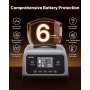 Múltiples protecciones: Protección integrada contra sobrecorriente, cortocircuito, inversión de polaridad, sobrecalentamiento, baja temperatura y sobretensión. Con compensación térmica, este cargador de baterías de litio ajusta automáticamente la corriente y la tensión para una carga segura.