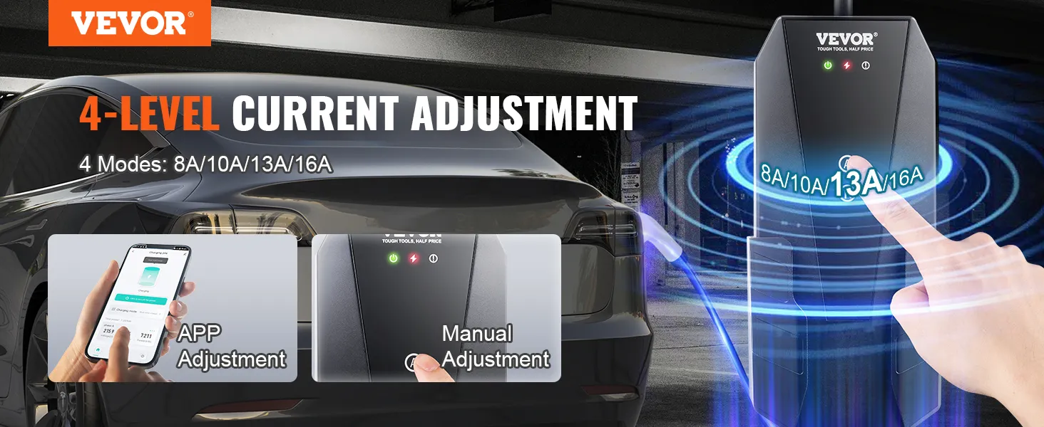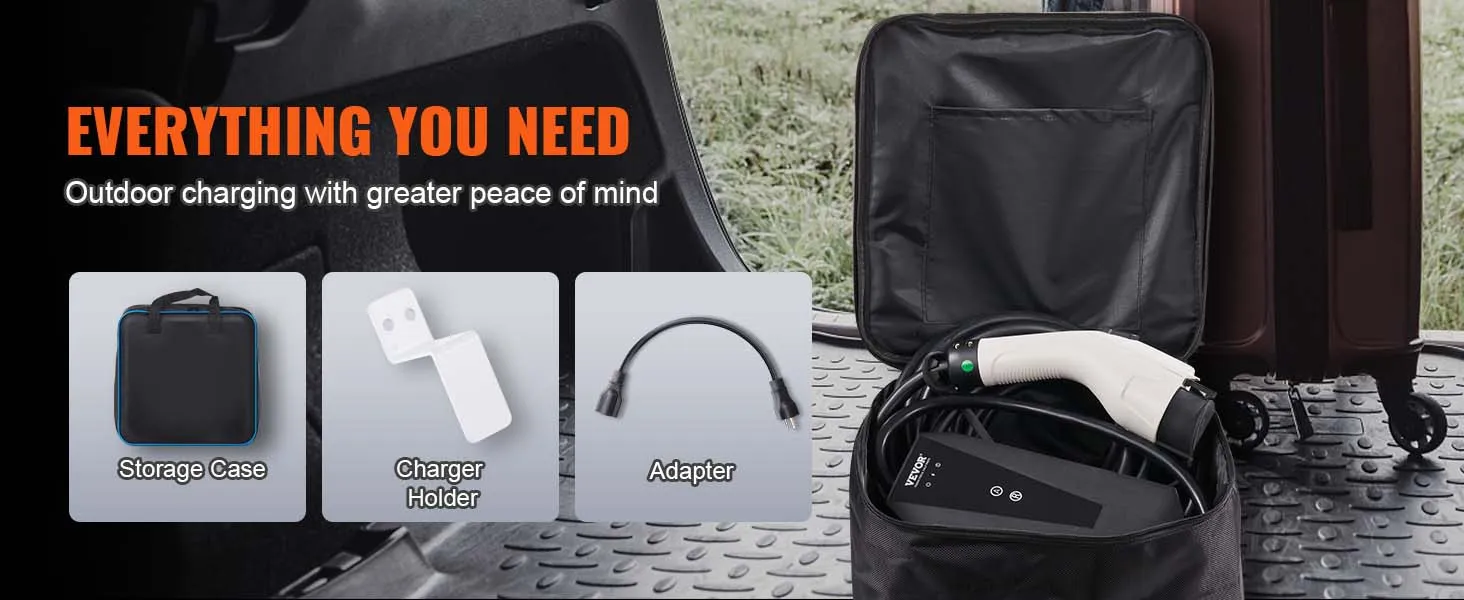 El cargador portátil para vehículos eléctricos es compatible con la mayoría de los vehículos eléctricos y automóviles híbridos enchufables que cumplen con el estándar J1772. Con su ajuste de corriente de 4 niveles (8A, 10A, 13A, 16A), puede pasar más tiempo saliendo a divertirse y menos tiempo esperando cuando está de aventura y acampando.
