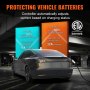 El cargador portátil proporciona protección contra rayos, fugas, conexión a tierra, sobretensión, subtensión, sobrecarga, sobrecorriente y sobrecalentamiento para garantizar la seguridad de la batería de su vehículo. Cumplir con los estándares de certificación de seguridad ETL.