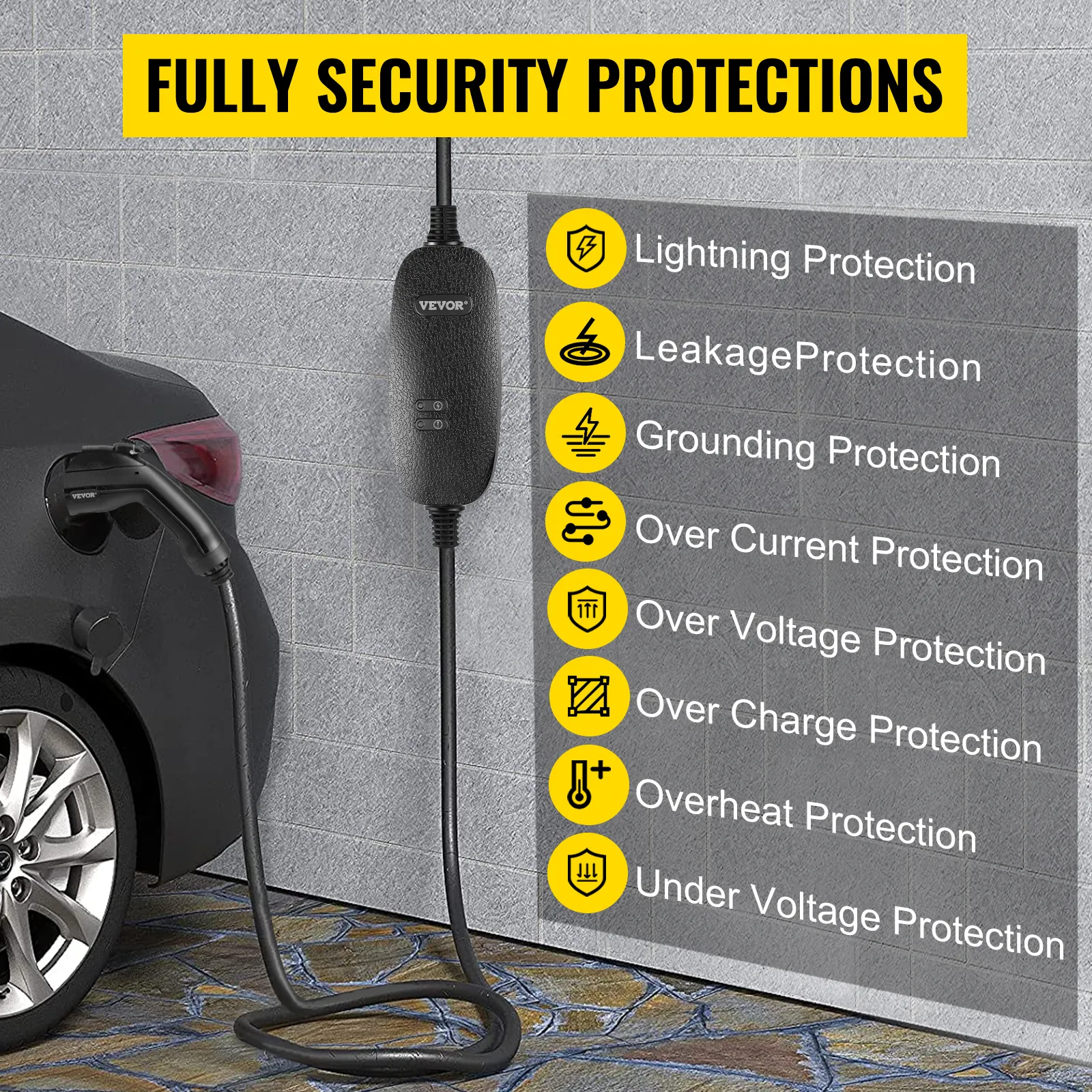 - Este cargador de coche portátil de nivel 1+2 está equipado con un enchufe Nema 6-20 que carga su coche 4 veces más rápido que cualquier cargador EV de nivel 1 de 8A que haya usado. Los indicadores LED muestran el estado de carga directamente y el cable de carga de 25 pies se adapta a la mayoría de las entradas o garajes. Con el cargador EV portátil VEVOR, puede pasar más tiempo divirtiéndose y menos tiempo esperando cuando está de aventura y acampando.