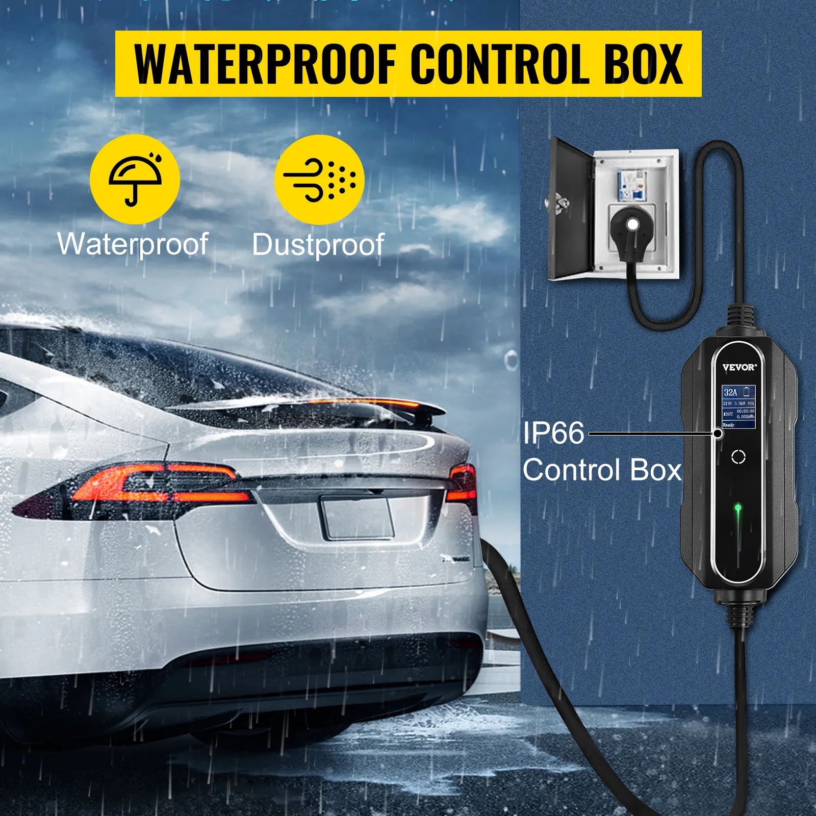 Por lo tanto, tener un cargador resistente al agua te ayudará a cargar tu vehículo incluso bajo una lluvia ligera. Nuestro cargador para automóvil eléctrico le ayuda a cargar su vehículo en determinadas condiciones climáticas, como lluvia ligera, nieve, etc. Sin embargo, no se recomienda utilizar este cargador en condiciones climáticas severas.