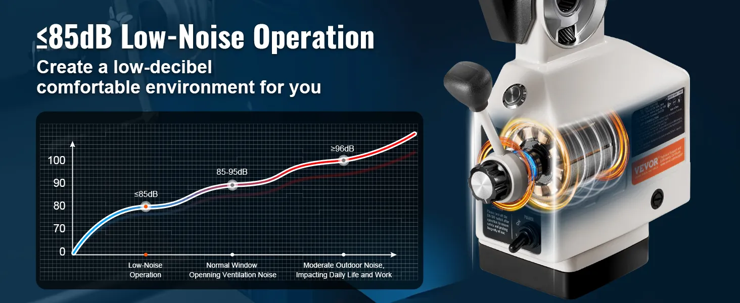 Equipada con engranajes cónicos espirales Gleason, nuestra alimentación de potencia para fresadoras garantiza una relación de transmisión estable, bajo nivel de ruido, alta eficiencia de transmisión y excelente capacidad de carga. Con niveles de ruido ≤85 dB, proporciona un entorno propicio para su trabajo o estudio sin interrupciones.
