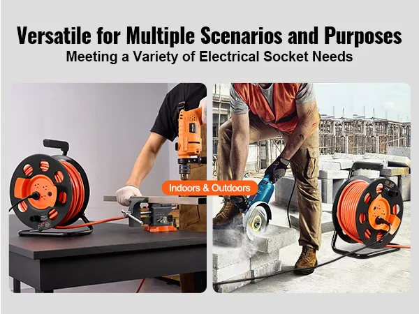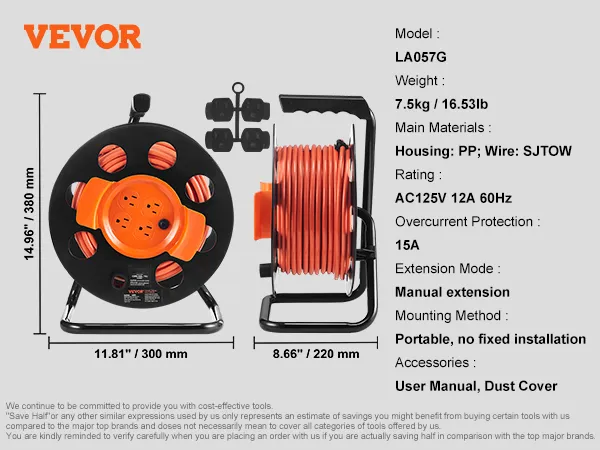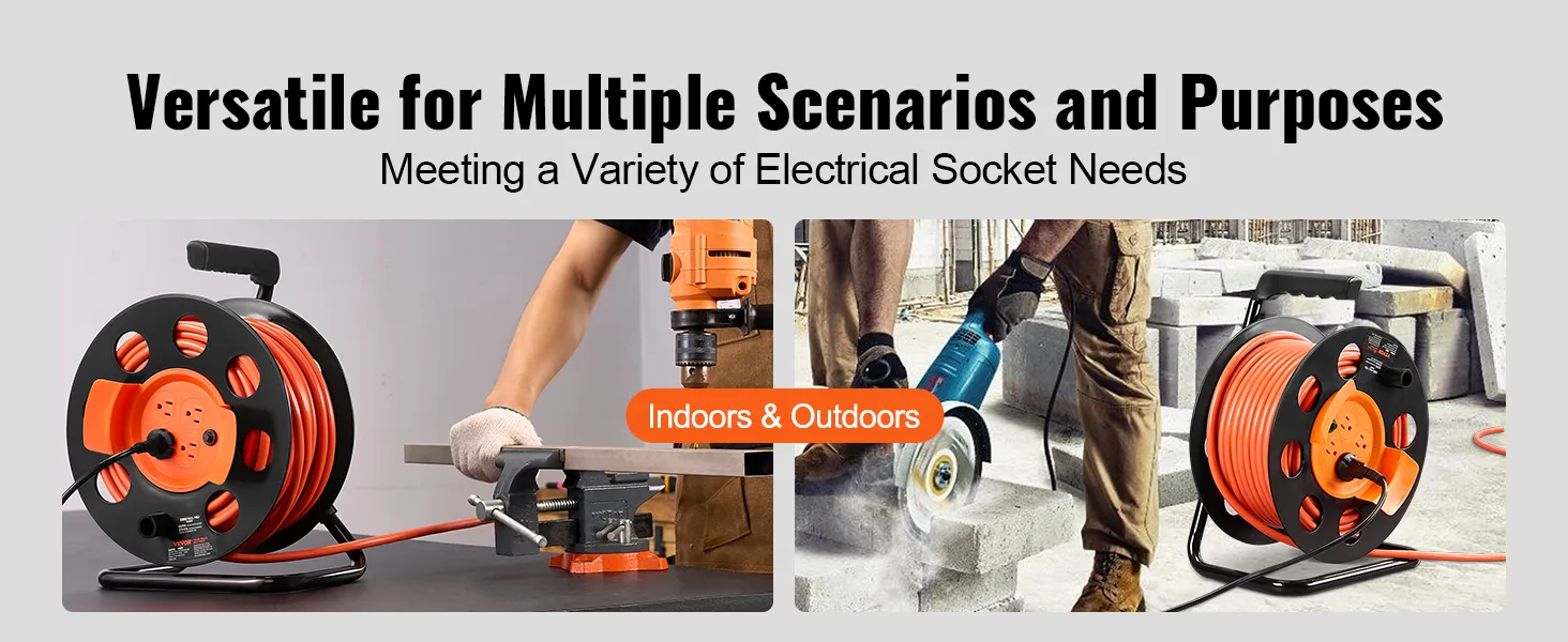Materiales sólidos, cables duraderos: El cable de extensión está fabricado con cable SJTOW de alta calidad. El cable SJTOW de 30,5 m (100 pies) es apto para exteriores, impermeable y resistente al aceite, ideal para diversos entornos especiales, lo que garantiza su durabilidad. Además, el carrete de cable tiene una estructura robusta que proporciona alta fiabilidad.