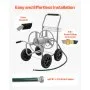 Large Reel Design: This hose cart with wheel fits up to 400ft (12192cm) of 1/2" (12.7mm) or 250ft (7620cm) of 5/8" (15.88mm) hose. Its widened reel allows faster loading and easy storage, eliminating reach issues and letting you move around yards or patios smoothly without constantly repositioning the hose