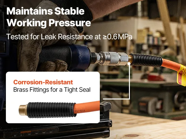 Duradera y flexible: Nuestra manguera de aire de goma soporta hasta 300 PSI y funciona de forma fiable entre 23 °F y 113 °F, resistiendo torceduras, aplastamientos y roturas para un flujo de aire fluido. El protector de resorte integrado y la funda protectora de goma proporcionan protección adicional para la manguera y el conector, reduciendo la flexión y el desgaste.