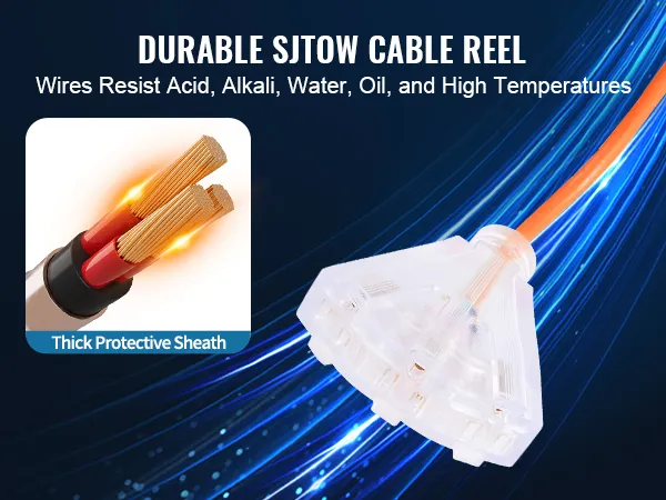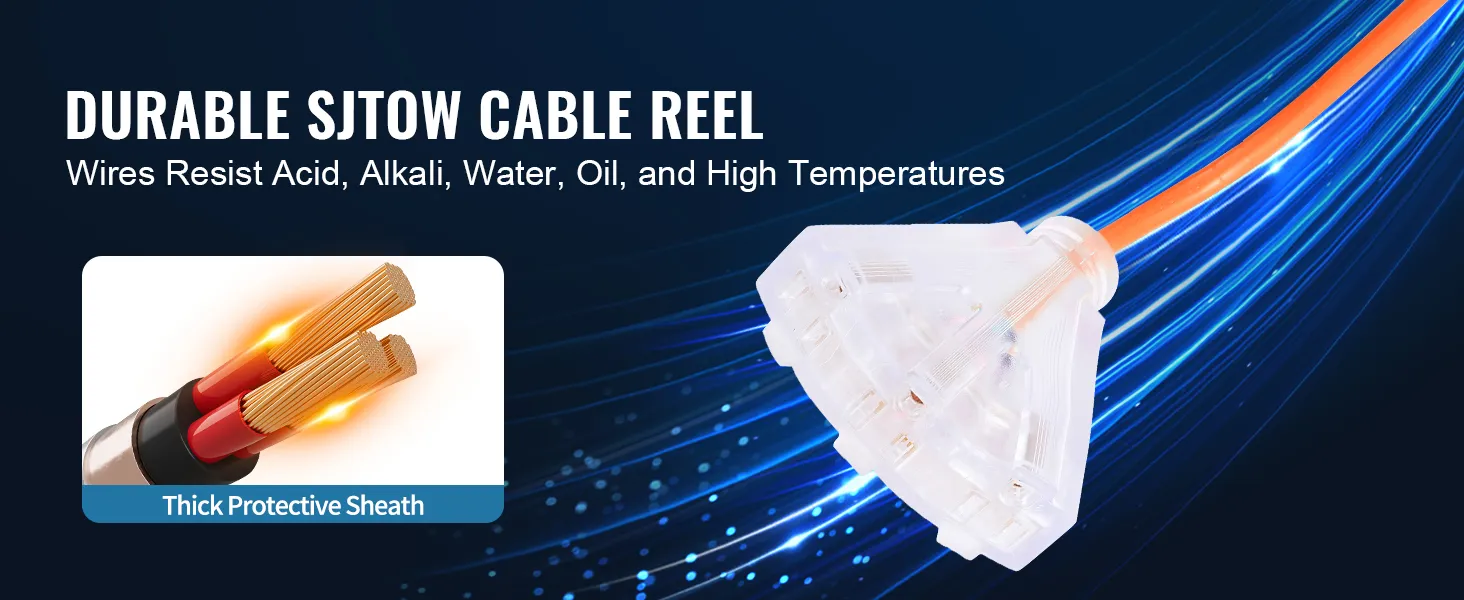 Built with premium SJTOW cable, our retractable extension cord reel offers unbeatable outdoor protection and durability. Perfect for any tough environment, it ensures your power stays reliable wherever you go.