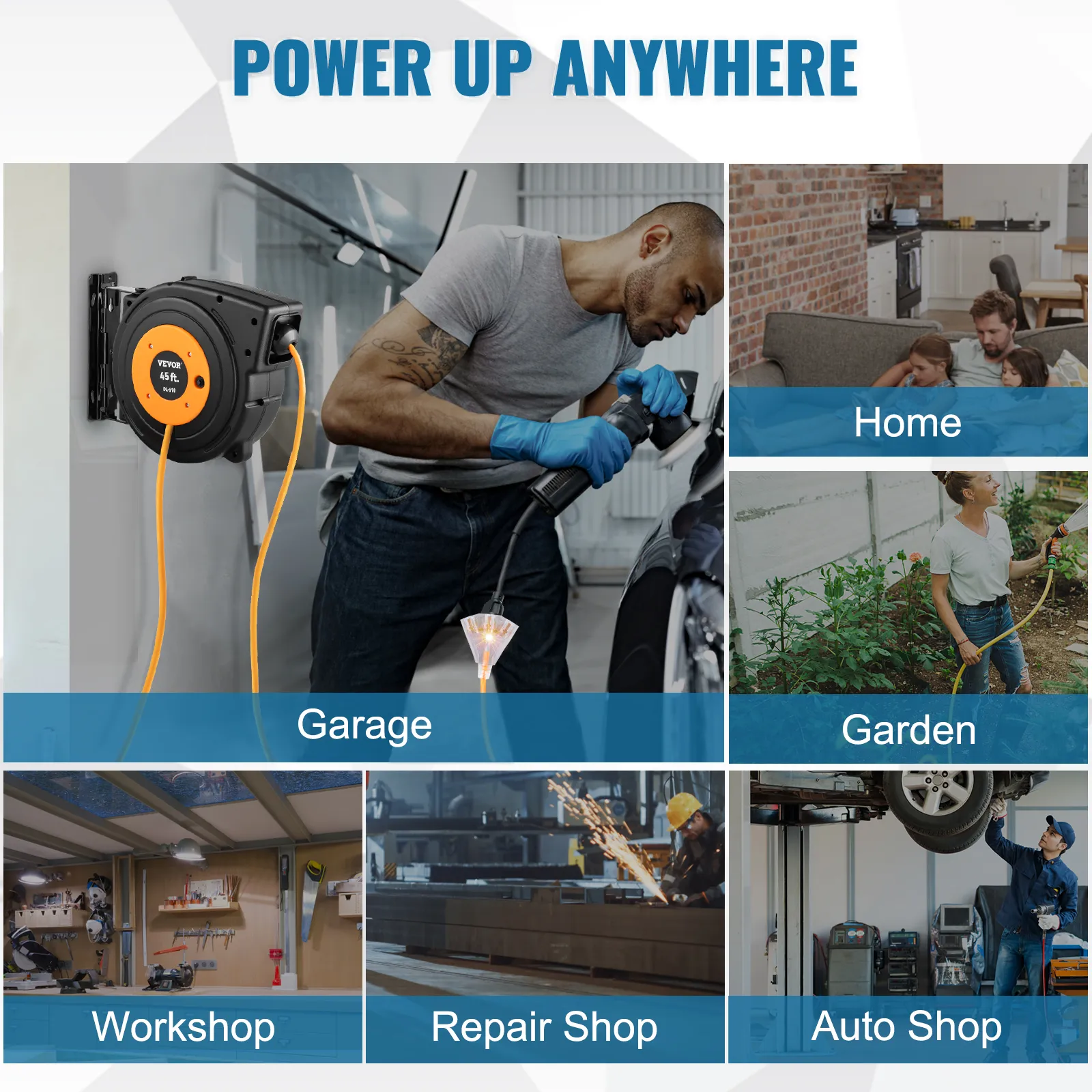 Este diseño ahorra espacio, lo cual resulta especialmente útil en empresas, garajes y talleres donde la eficiencia y la organización son fundamentales. Para quienes utilizan herramientas eléctricas, el carrete de cable de extensión VEVOR de calibre 12 es un elemento esencial gracias a su durabilidad, facilidad de uso y características de seguridad.