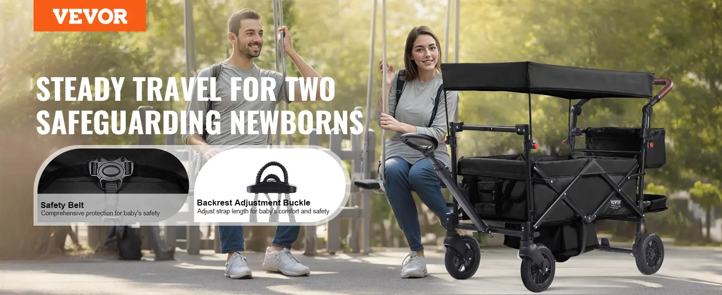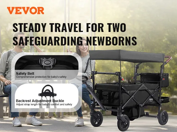 Este cochecito doble combina robustez y seguridad, proporcionando a tus bebés la máxima protección. El cinturón de seguridad de cobertura total garantiza la seguridad de sus bebés durante el viaje, brindándole tranquilidad mientras viaja.