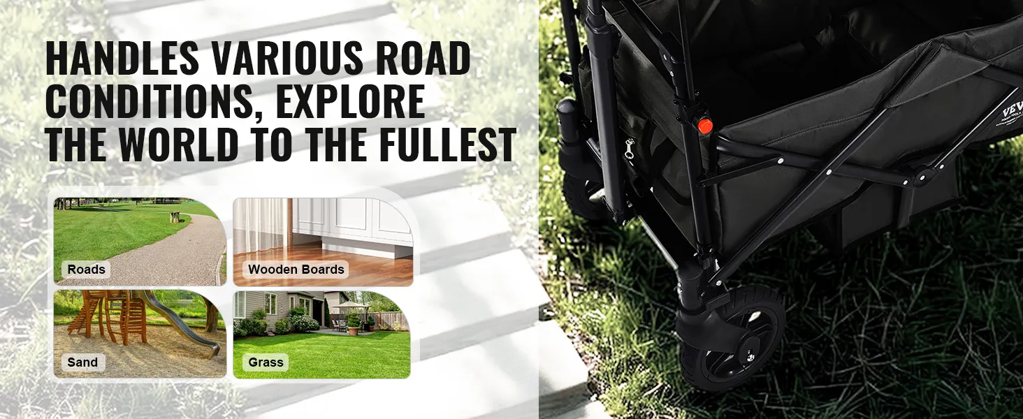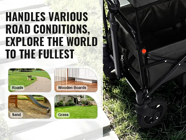 Handles various terrains with ease, including sand, grass, roads, and wooden boardwalks. Whether you're on an outing,or strolling in the park, the stroller provides a stable ride, allowing your baby to explore the world with confidence.