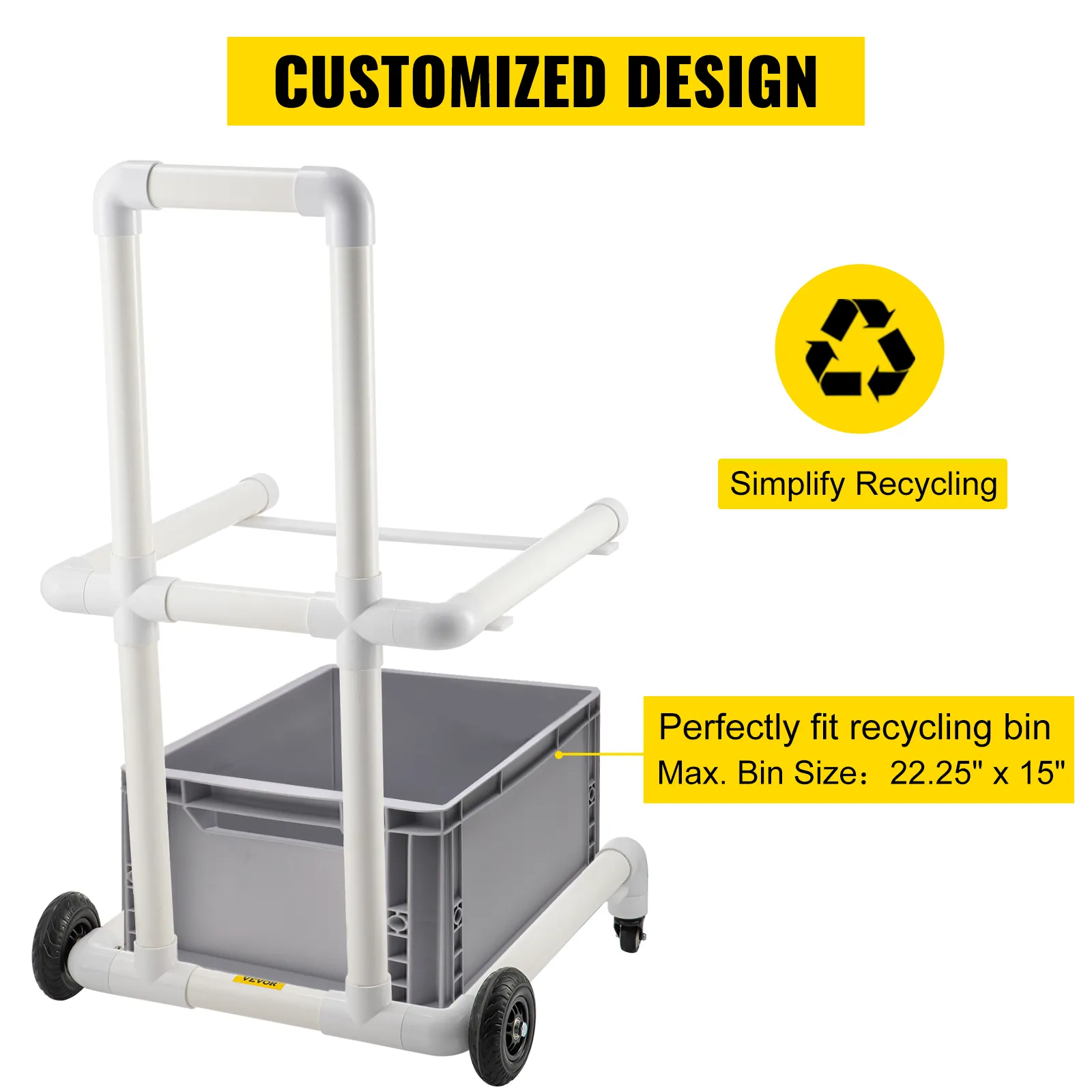 Este carrito de reciclaje diseñado a medida puede contener cajas de hasta 22,25 x 15 pulgadas. Elija este carrito de reciclaje que se adapta perfectamente a su contenedor de reciclaje y hace que el reciclaje de basura diario sea más fácil.
