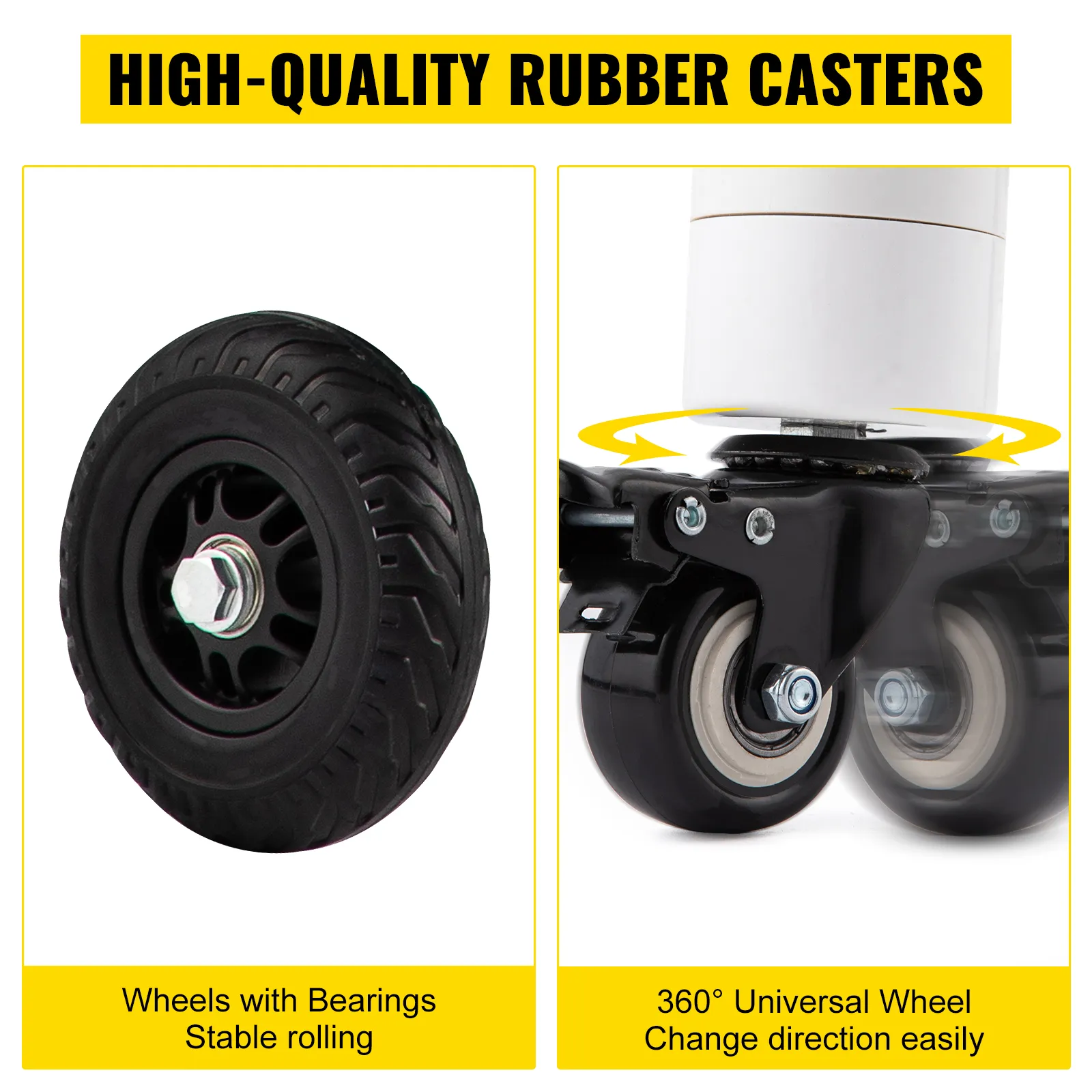 El carro de reciclaje está equipado con ruedas de goma seleccionadas. Las ruedas mejoradas con cojinetes son más flexibles y estables y tienen una mayor capacidad de carga, y dos ruedas universales de 360° cambian de dirección rápidamente, lo que permite que el carro transporte el contenedor de reciclaje sin problemas.