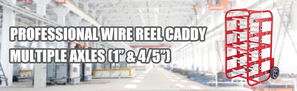 【MÚLTIPLES ROLLOS DE ALAMBRE】- Capaz de transportar más de un carrete de cable con diferentes tamaños, el carrito de carrete de alambre está equipado con cuatro ejes de 1 pulgada de diámetro y diez ejes de 4/5 pulgadas de diámetro para asegurar perfectamente varios carretes de cable a la vez.