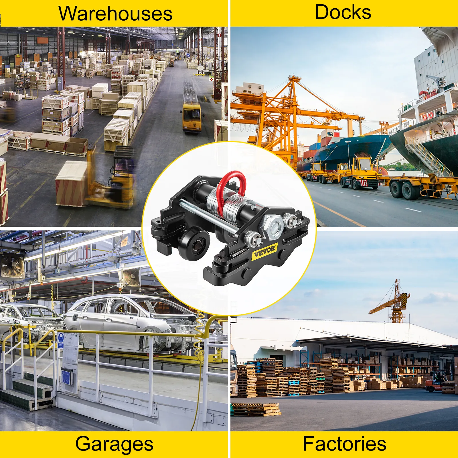 El carro de vigas le permite mover hasta 2200 lbs/1 tonelada con un simple empujón. Así, el transporte de cargas pesadas se convierte en un proceso placentero.