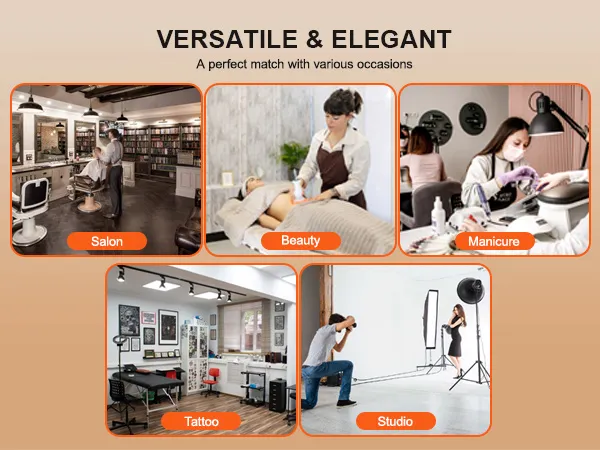 Amplias aplicaciones: además del salón de belleza, nuestra estación de salón se utiliza ampliamente en salones de alta gama, centros de spa, barberías, tiendas de manicura, estudios de cosmética y hogares. Mantenga sus suministros de peinado al alcance y aumente la eficiencia del trabajo.