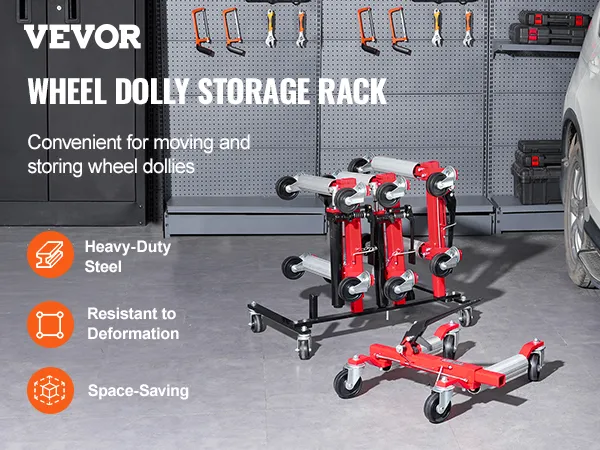 Admite 4 plataformas con ruedas: ya no es necesario llevar varias plataformas con ruedas ni moverlas de un lado a otro. Muévase rápidamente al vehículo que necesita reparación y mejore la eficiencia del trabajo. Nota: El soporte para plataforma con ruedas para automóvil es solo un soporte de almacenamiento y no incluye plataformas con ruedas.