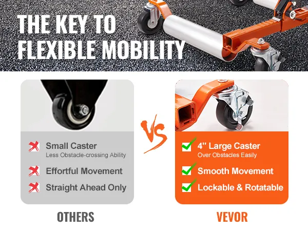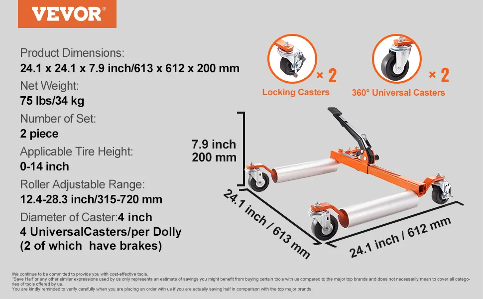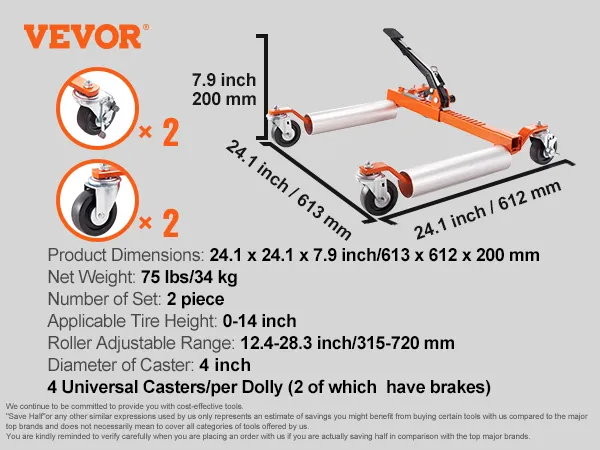 Experimente una movilidad sin esfuerzo y un mantenimiento del automóvil sin complicaciones con VEVOR Wheel Dolly. Robusto, versátil y fácil de usar, proporciona mayor seguridad y fácil maniobrabilidad. Maximice la comodidad y libere todo el potencial de sus ruedas con confianza.