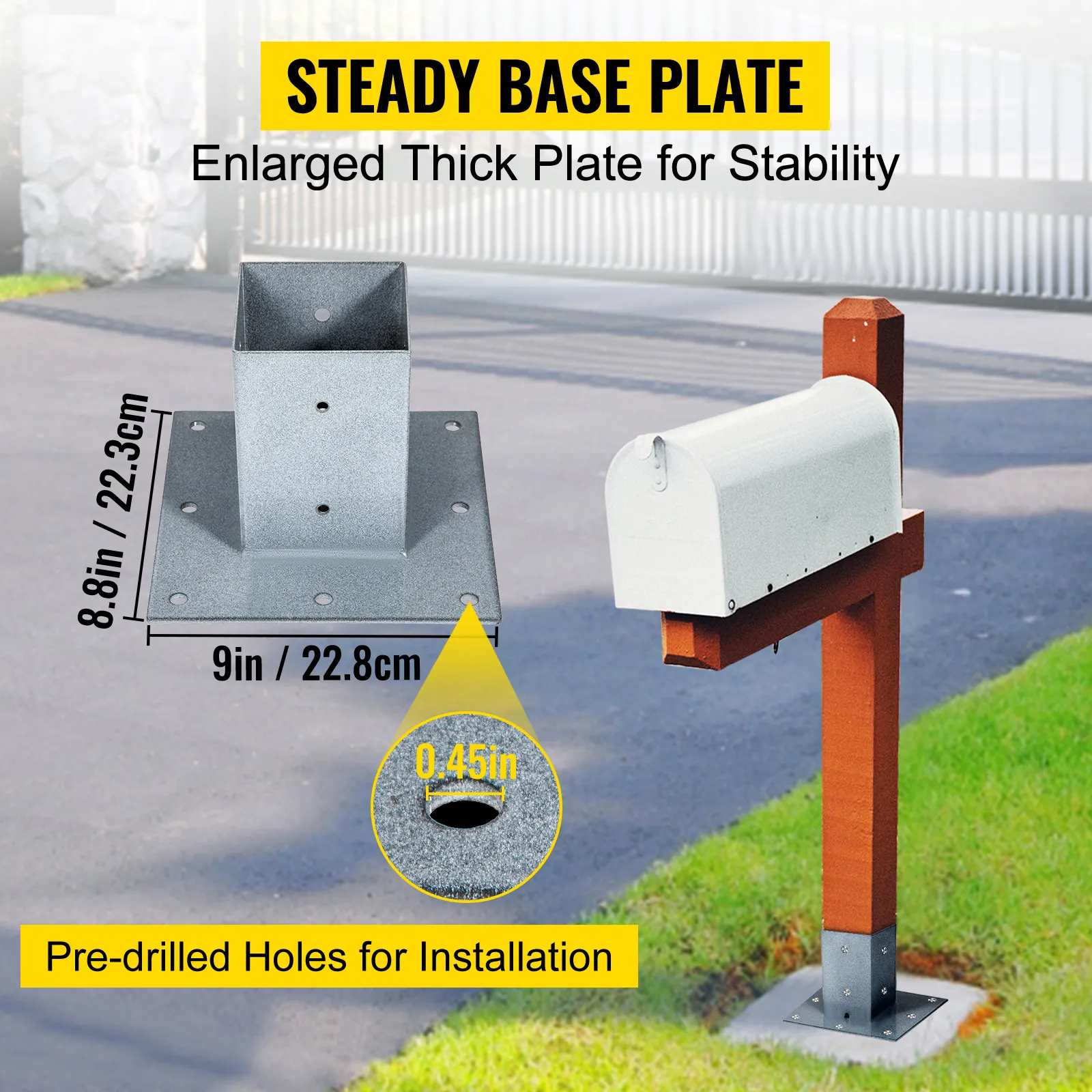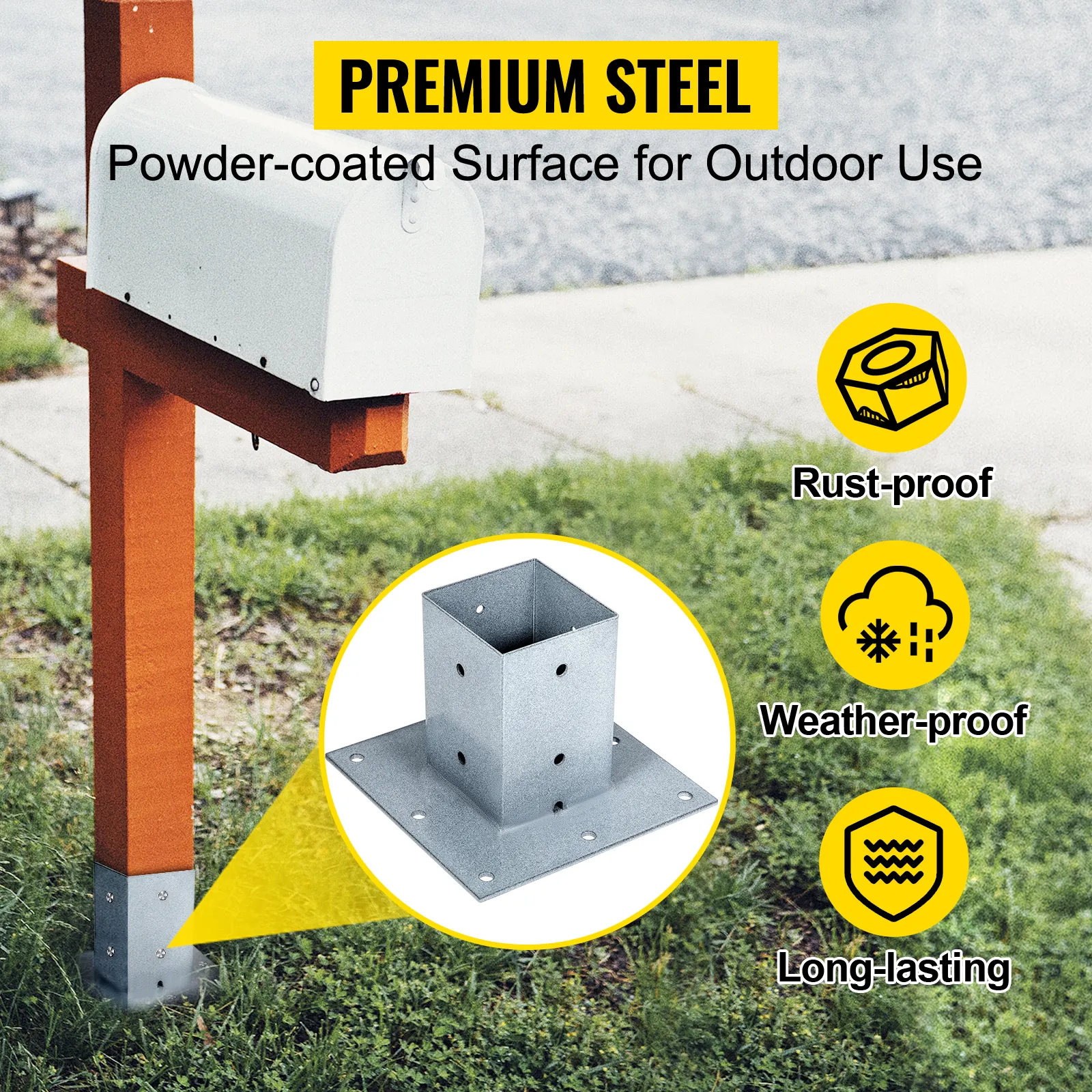 Nuestra base para postes de buzón, construida con material de acero de primera calidad, es resistente a la oxidación y a la corrosión para una larga vida útil. Además, el acabado pulvirrevestido es resistente a la intemperie para uso en exteriores.