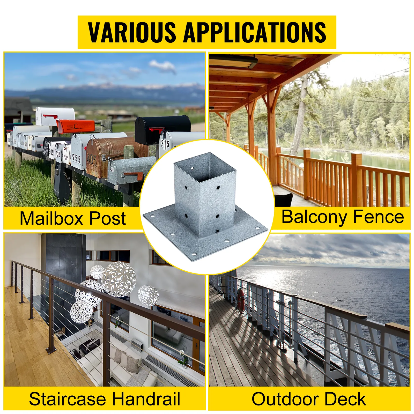 Nuestra base de montaje de correo de acero es ideal para postes de buzones y excelente para cercas de balcones, pasamanos de escaleras, barandas de porches, patas de mesas, terrazas al aire libre, etc.