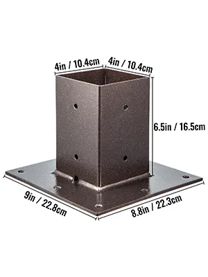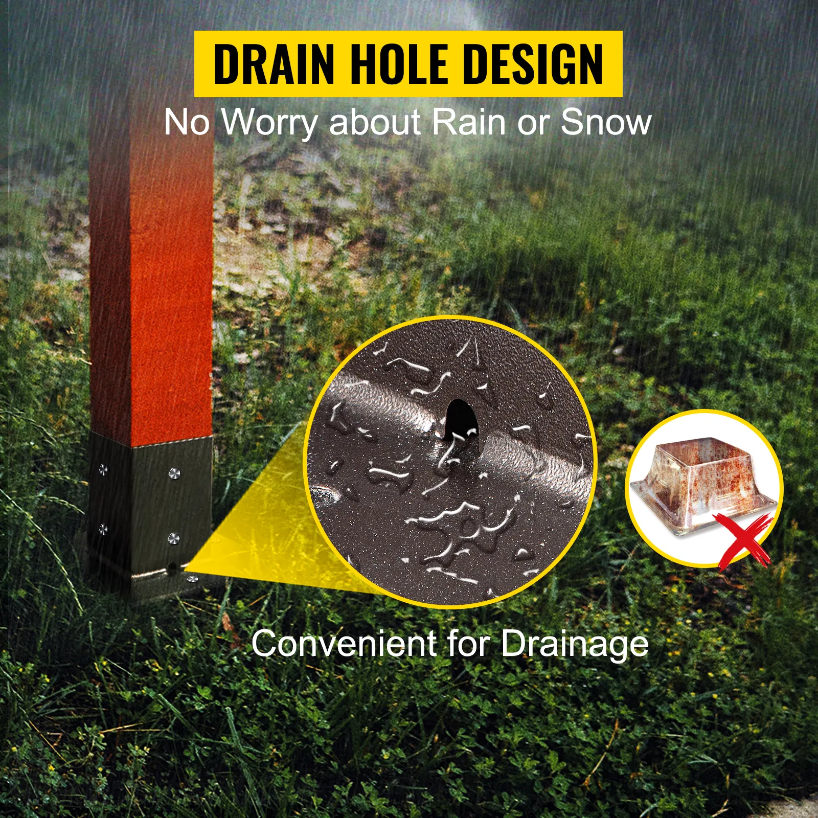 Gracias al orificio de drenaje en la parte inferior, nuestra placa base de poste es conveniente para el drenaje. El agua se puede drenar fácilmente, por lo que no hay que preocuparse por la lluvia o la nieve.