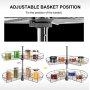 Puede colocar artículos a voluntad cambiando la posición de las 2 cestas, con 5 orificios en el eje central, 2 orificios en el eje inferior y la distancia entre cada orificio es de 1,6 pulgadas.
