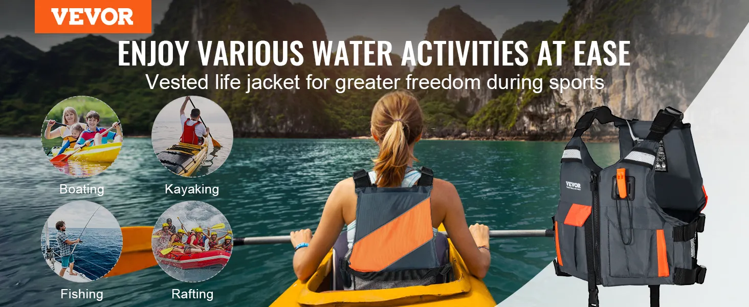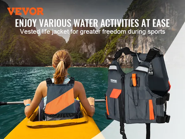 Chaleco salvavidas VEVOR para deportes acuáticos (PFD), chaleco salvavidas con nailon impermeable y flotabilidad de 85 N, chaleco/chaqueta salvavidas para cualquier actividad acuática: pesca, kayak, surf y más, para hombres y mujeres M