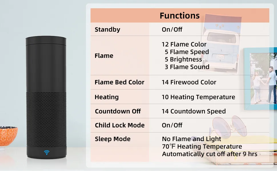Modos de operación múltiple: nuestra chimenea empotrada se adapta perfectamente al asistente de voz Amazon Alexa, lo que le permite despertarse con una cálida chimenea eléctrica en cualquier momento y en cualquier lugar. Además, puede cambiar el color de la llama y establecer la temperatura de calentamiento que desee con la pantalla táctil inteligente y el control remoto de nivel de TV que proporcionamos. Además, el control del teléfono inteligente facilita cambiar el color de la llama y configurar la temperatura de calentamiento en cualquier momento y en cualquier lugar.