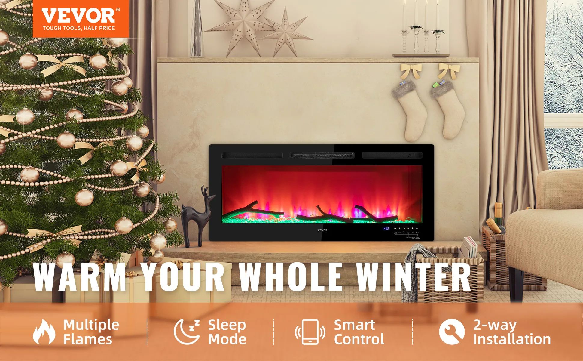 Prepárate para dejar boquiabiertos a tus invitados. Brindamos una decoración elegante a su hogar o negocio, y nuestra chimenea eléctrica viene con una función de calefacción, brindando calidez y amor en el frío invierno. Elija VEVOR y obtendrá el exclusivo control de audio inteligente, cientos de efectos de llama, una pantalla grande para dar vida a bellas imágenes y un modo de suspensión tranquilo con poco ruido. ¡Prepárese para disparar y observe todas sus expectativas de una chimenea eléctrica!
