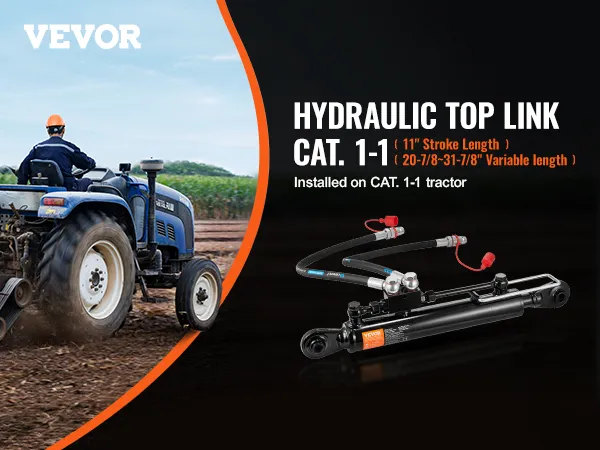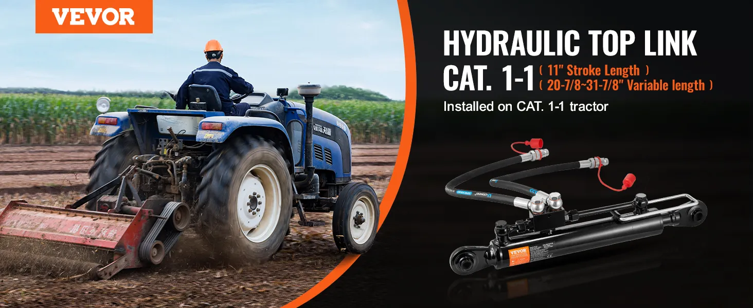 Adaptación para gato. 1-1 Tractores: El brazo superior hidráulico cat. Diámetro de entrada/salida de la varilla 1-1: 3/8 pulg.; Longitud mínima retraída: 20-7/8 pulg. (530 mm); Longitud de carrera: 11 pulg. (280 mm); Longitud de la manguera hidráulica: 30,1 pulg. (765 mm). Se puede instalar directamente en Cat. 1-1 y se usa ampliamente en arado agrícola pesado, reciclaje de desechos, transporte y otras tareas.