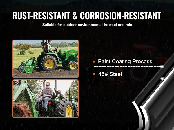 The top link made entirely of 45# steel, it is robust and heavy-duty, resistant to deformation. With added paint coating on the surface, it is corrosion-resistant and rust-resistant, ensuring durability even in harsh environments such as muddy terrain, rainy days, and outdoor high temperatures.
