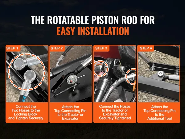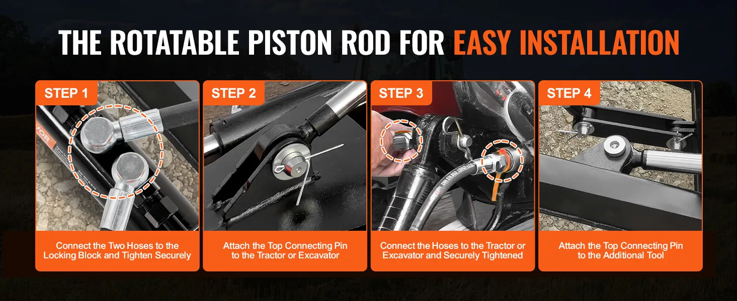 Easy Installation: The rotatable piston rod of tractor loader hydraulic cylinders can meet different installation requirements, equipped with high-pressure-resistant and sturdy hydraulic hoses. You can assemble and use the product by yourself without the need to separately acquire hoses, making assembly hassle-free.