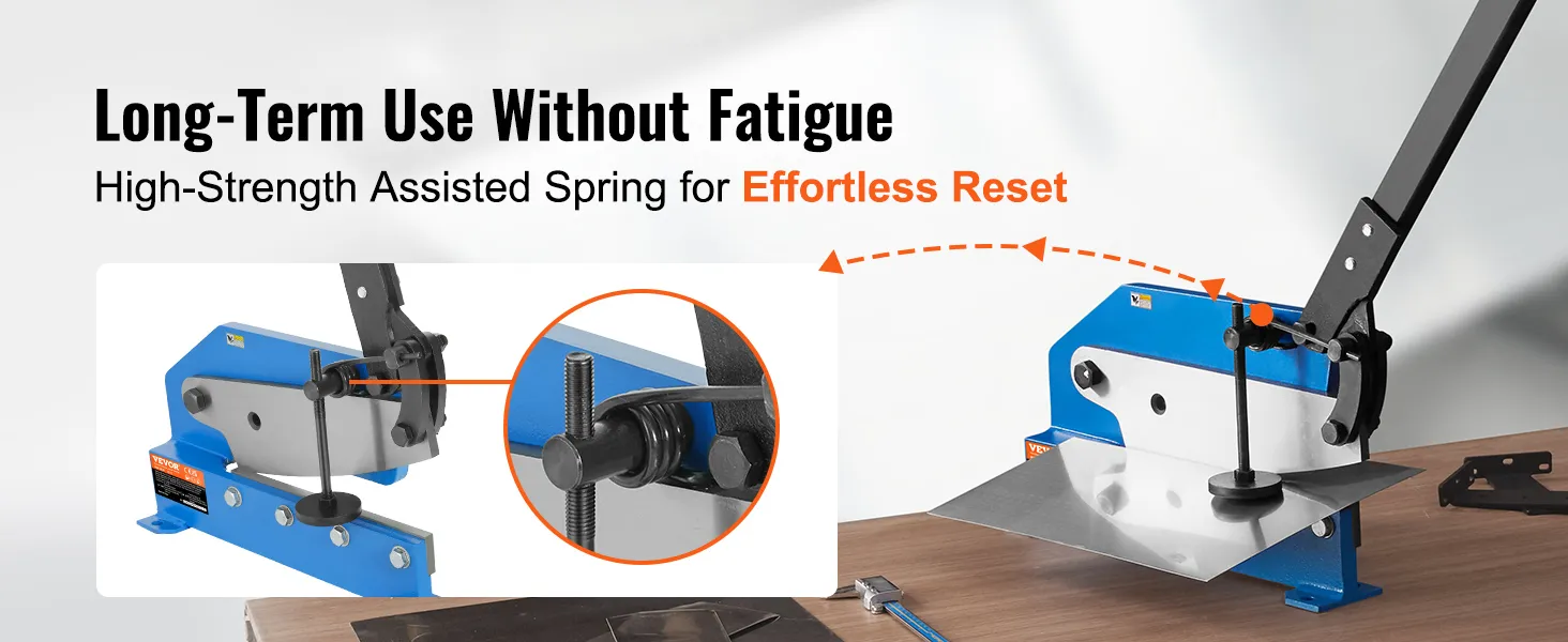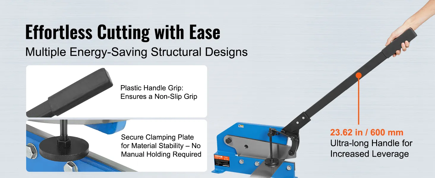 Utiliza hojas de acero T10: Dureza de la hoja: >52HRC; Espesor: 0,47" / 12 mm. Puede manejar fácilmente varias láminas de metal duro, como acero con bajo contenido de carbono, barras de acero, placas de aluminio, placas de aleación de aluminio, placas electrogalvanizadas, placas estañadas, placas de acero compuesto, recubiertas de color. Placas de acero Esta versatilidad hace que su trabajo sea más cómodo.