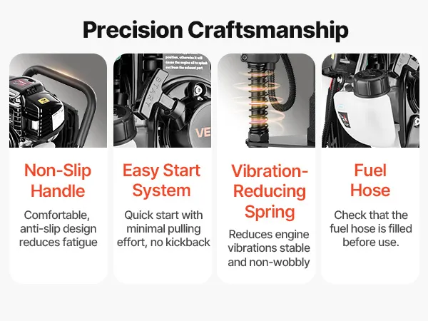 User-Friendly and Comfortable: Designed with an anti-slip handle for a secure grip, a simple pull-start system for easy ignition, and shock-absorbing springs to reduce engine vibration, ensuring comfort during extended use