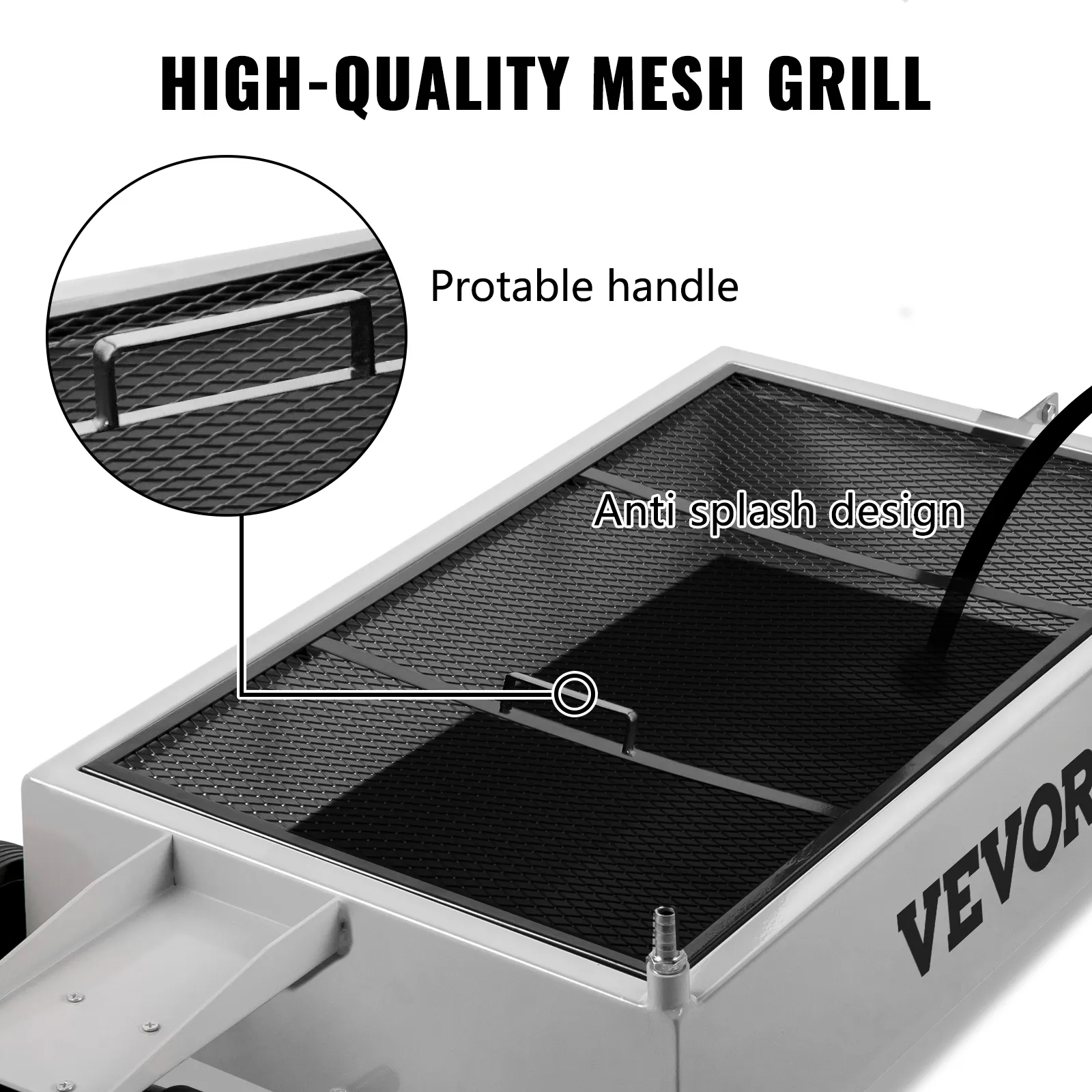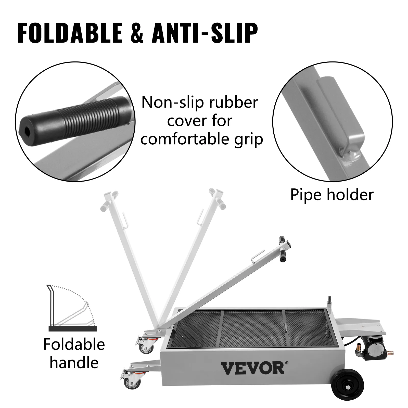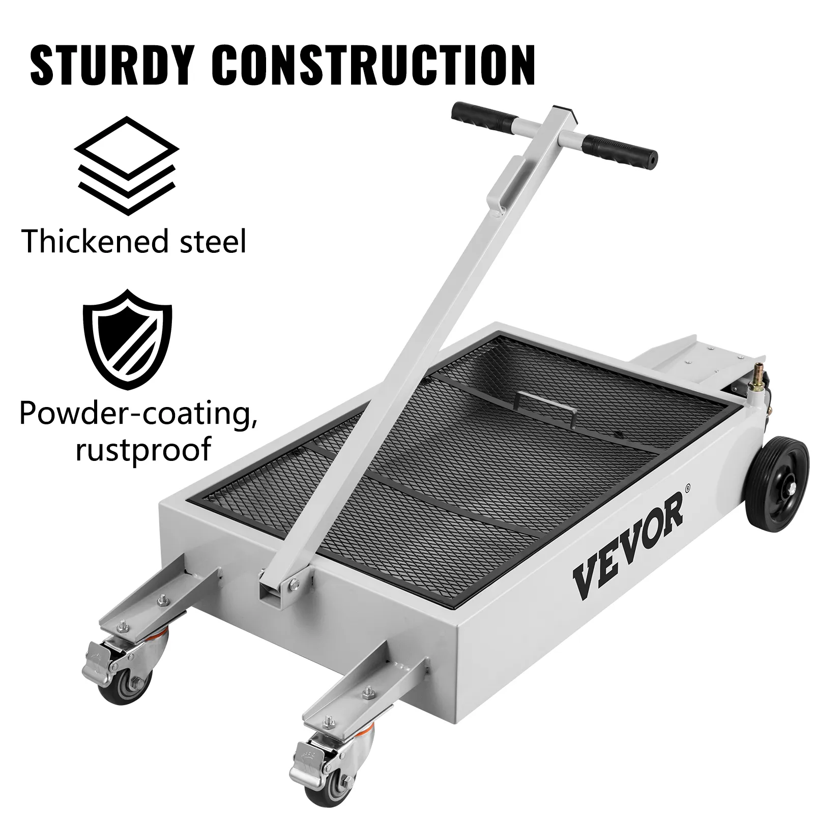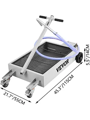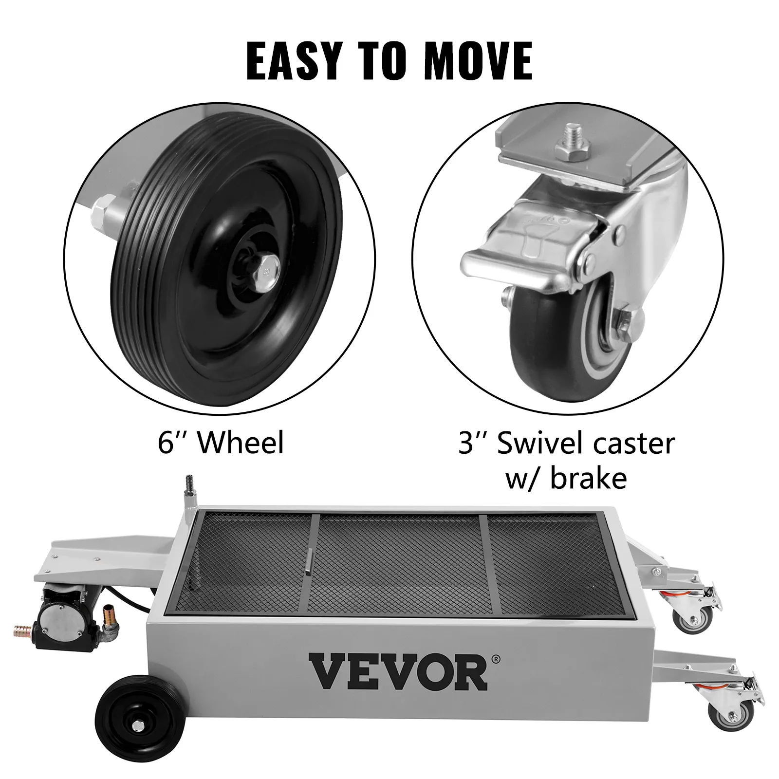 Nuestra bandeja de drenaje cuenta con ruedas rígidas y ruedas giratorias con bloqueo para un transporte sin problemas. La rejilla de malla antisalpicaduras puede mantener su tienda limpia y segura. Esta bandeja de drenaje es perfecta para evacuar líquidos usados, incluidos aceite de motor, líquido de transmisión y refrigerante.