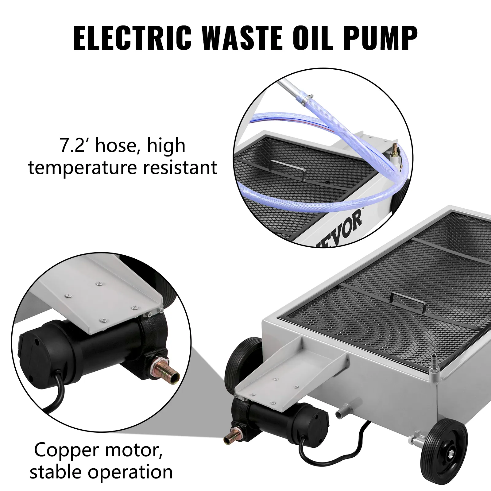 El diseño de gran capacidad puede contener hasta 13 galones de aceite a la vez. Perfecto para recoger residuos de aceite de motor, líquidos de frenos y refrigerante.