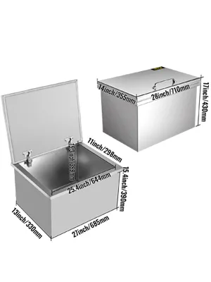 Dimensión del producto: 28 x 14 x 17 pulgadas; Dimensiones del recorte: 27 x 13 x 15,4 pulgadas; Dimensión interior: 25,4 x 11,4 x 15,3 pulgadas. Adopta un diseño empotrado que ahorra espacio, el interior de nuestra hielera de acero inoxidable tiene una gran capacidad.
