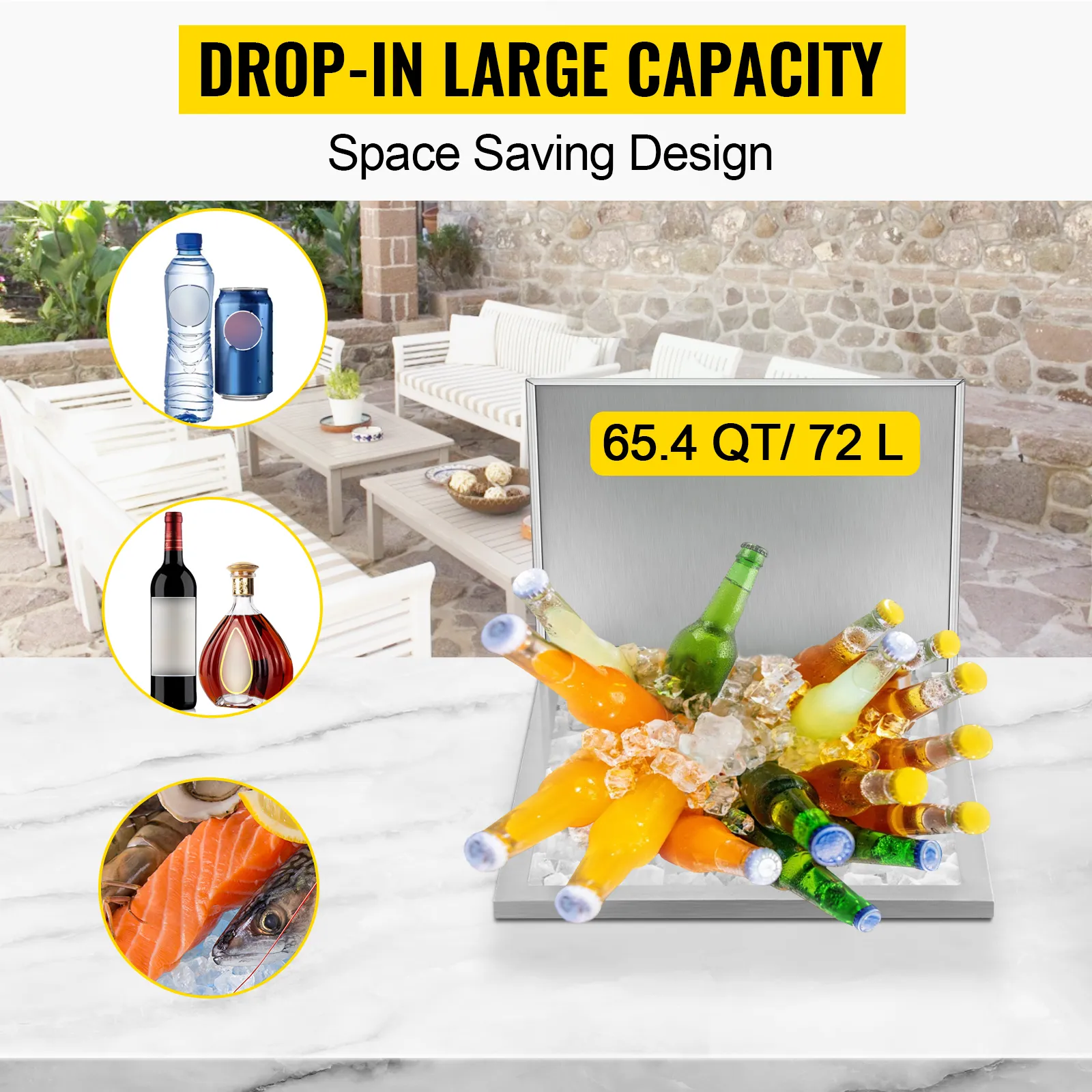 Esta hielera empotrada está equipada con acero inoxidable 304 de primera calidad de 0,05 pulgadas de espesor, lo que aumenta la durabilidad. Con función de aislamiento, esta hielera empotrada mantendrá sus bebidas frescas por más tiempo.