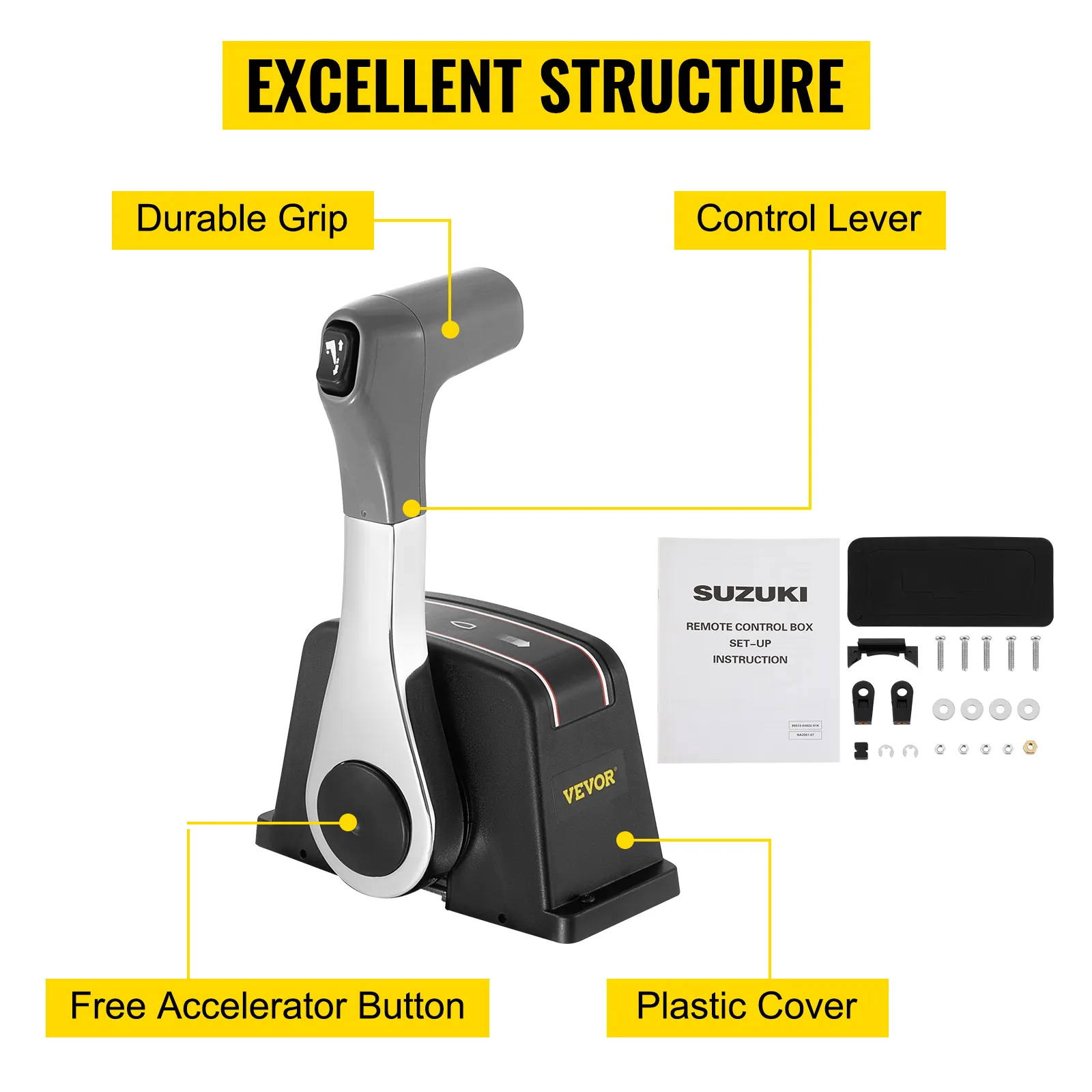 Amplia compatibilidad: el control remoto del acelerador del barco es compatible con el fueraborda Suzuki, diseñado tanto para el cambio como para el acelerador, que se puede accionar operando una palanca de control remoto. Es ampliamente utilizado en yates para controlar su embarcación con facilidad.