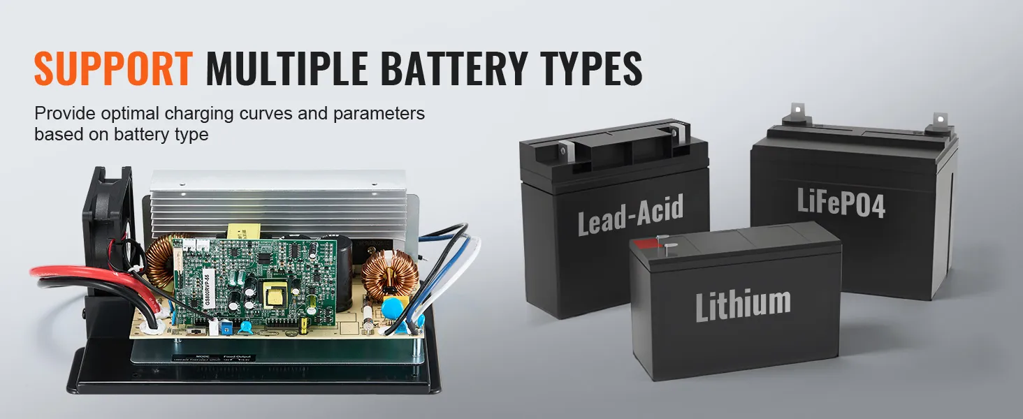 Smart Temperature-Controlled Fan: Keep your equipment in peak condition! Our RV battery charger features a intelligent silent fan, automatically start operating when the temperature exceeds the rated temperature and stops below. Designed with a sleek metal body for optimal heat dissipation, it ensures your gear stays in top shape, no matter the conditions.
