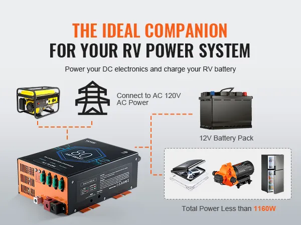 High-Performance 80A Converter: Delivering up to 80A of clean current, our RV power converter charge effortlessly drives all your RV electronics and appliances, from sound systems to lighting, ensuring comfort on every journey. Ideal for large-capacity RV batteries ranging from 75Ah to 80Ah.