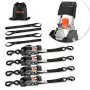 Correas de trinquete retráctiles VEVOR, 2,54 cm x 3 m, correas de amarre con ganchos en forma de S, resistencia a la rotura de 547 kg, 4 bucles suaves, trinquete de amarre para mudanzas, remolques, motocicletas, kayaks y techos de automóviles (paquete de 4)