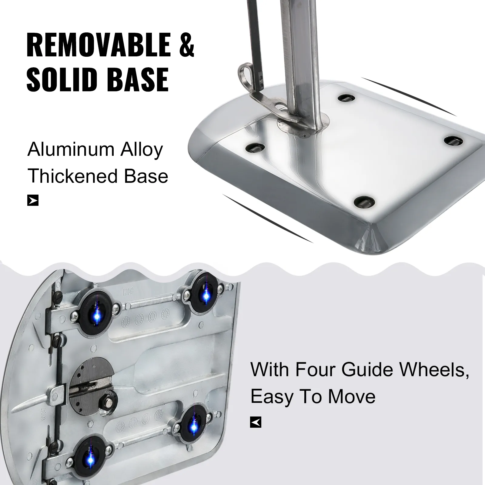 Con cuatro ruedas guía, la base espesante, hecha de aleación de aluminio, es fácil de mover. Y el tamaño compacto no ocupa mucho espacio.