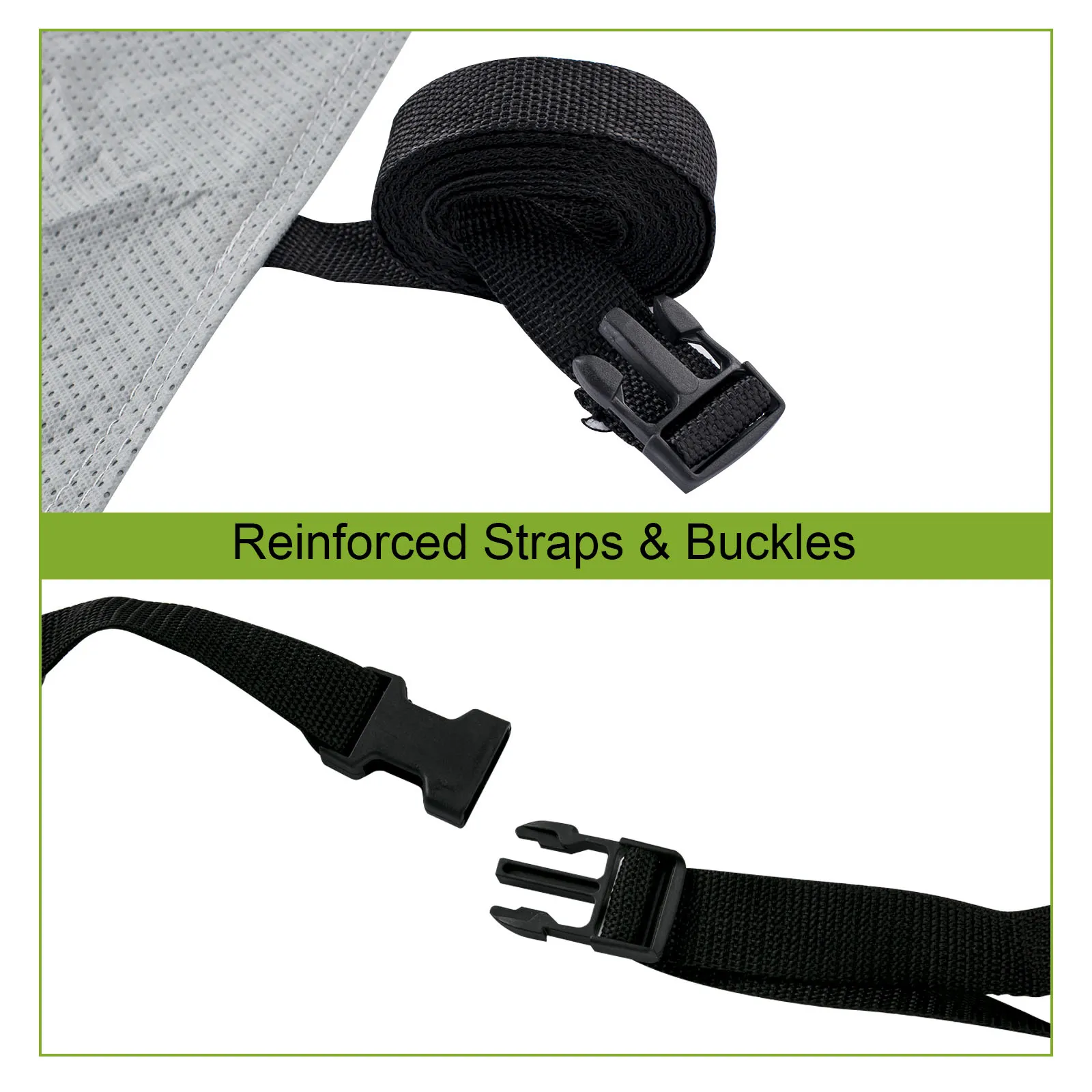 Las fundas para remolques de viaje están hechas de tela no tejida de 4 capas de 130 g con costuras de doble puntada para mayor resistencia a los rasguños, rasgaduras y rayos UV.