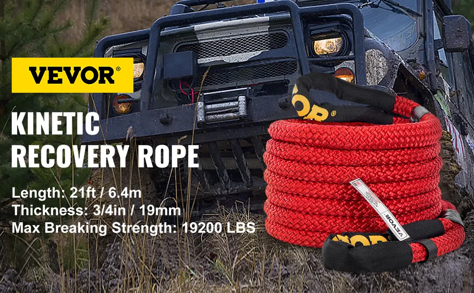 La cuerda de remolque de energía cinética VEVOR presenta alta resistencia, mejor durabilidad y extensibilidad, y un rendimiento profesional, muy superior a otras correas de arranque y cables de acero. La cuerda de recuperación de 3/4"x21' se estira un 30% bajo presión y retrocede para ayudar a reducir el impacto causado por el remolque en el vehículo. Adecuado para cualquier condición dura, sacándote de cualquier problema.