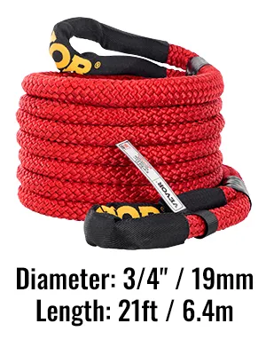 En comparación con una correa de remolque tradicional, esta cuerda de recuperación cinética de 21 pies ofrece un alargamiento adicional del 30 % para ganar más impulso, generando una mayor fuerza de tracción y aliviando la carga de impacto durante la recuperación.