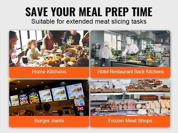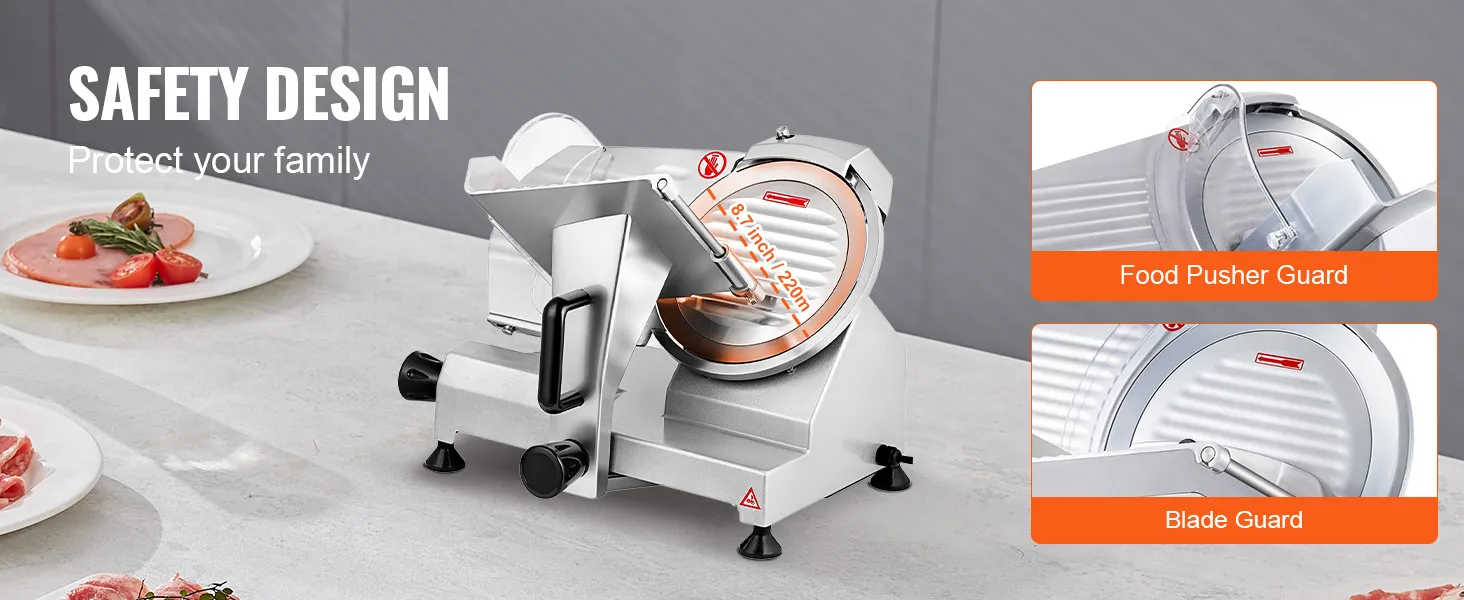 Our meat slicer is equipped with a high-efficiency 200W motor and 350-400 rpm slicing speed, allowing you to slice your favorite ingredients instantly. Whether it's meats, cheeses, bread, or vegetables, it saves you valuable food preparation time.