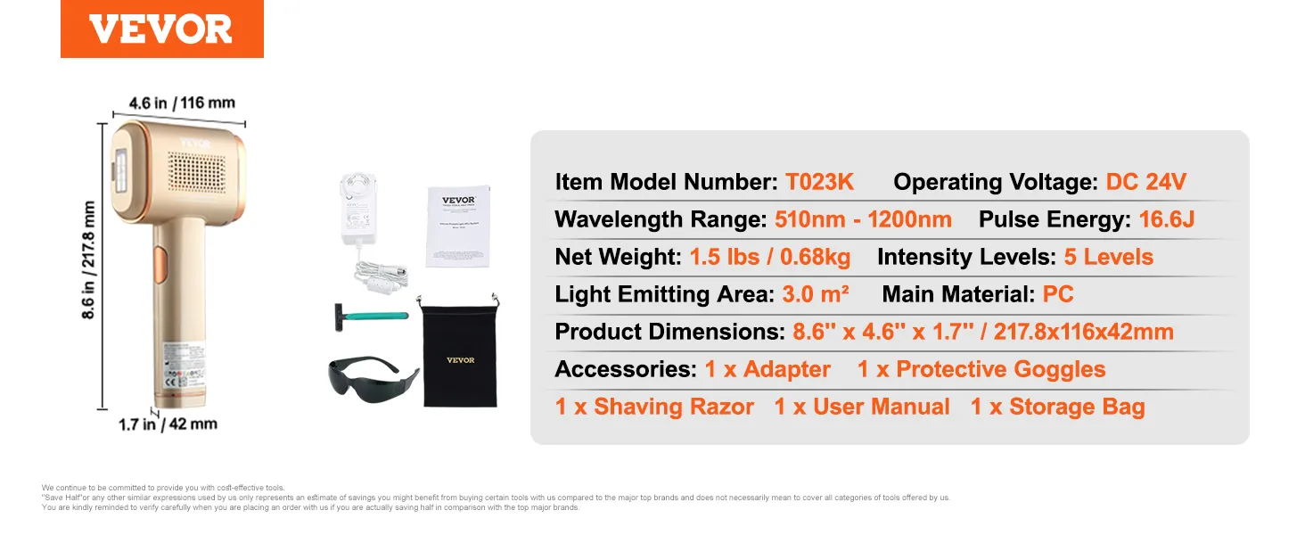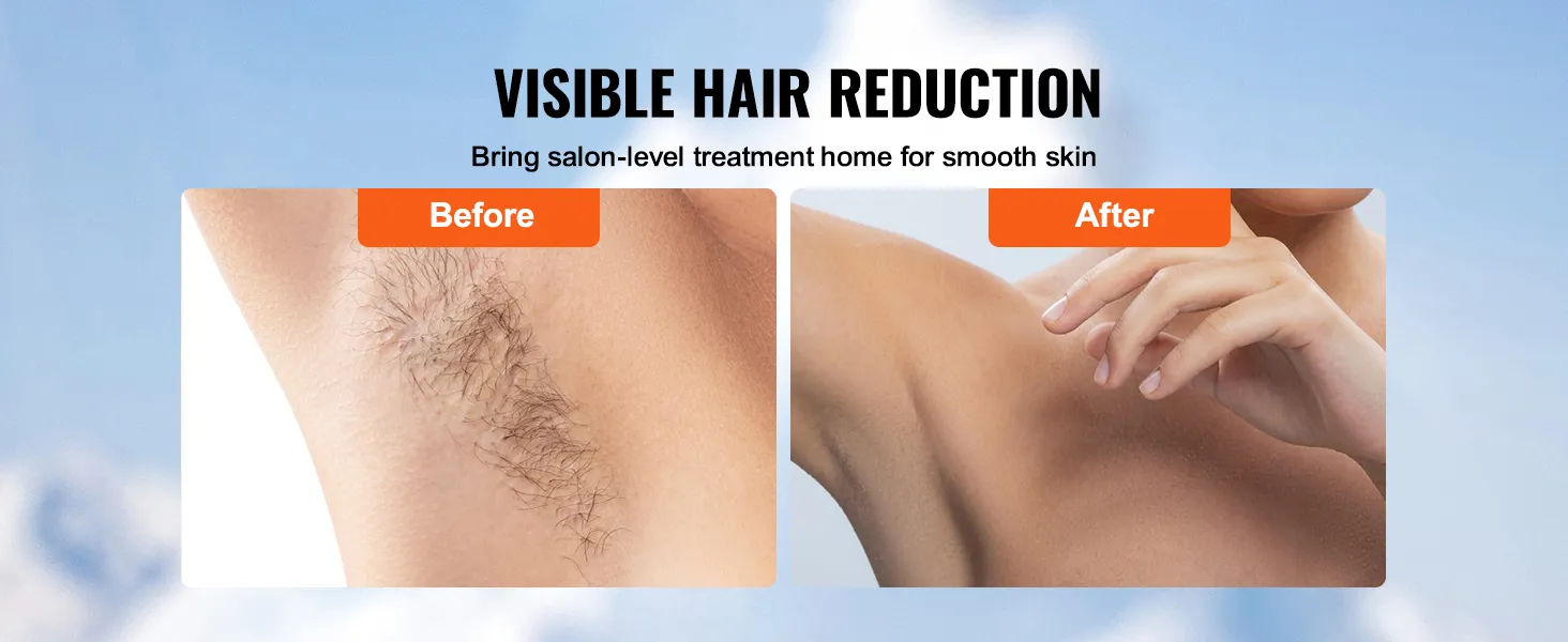 Modo 3 en 1 mejorado: el removedor de vello permanente VEVOR IPL cuenta con detección inteligente del tono de la piel, seguro y eficaz para la mayoría de los tipos de cabello. Obtenga una piel suave como la seda en casa con el modo mejorado 3 en 1: HR (depilación), SC (rejuvenecimiento de la piel), RA (eliminación del acné). Con 400.000 impresionantes tiempos de flash, es más que suficiente para satisfacer las necesidades de toda su familia.