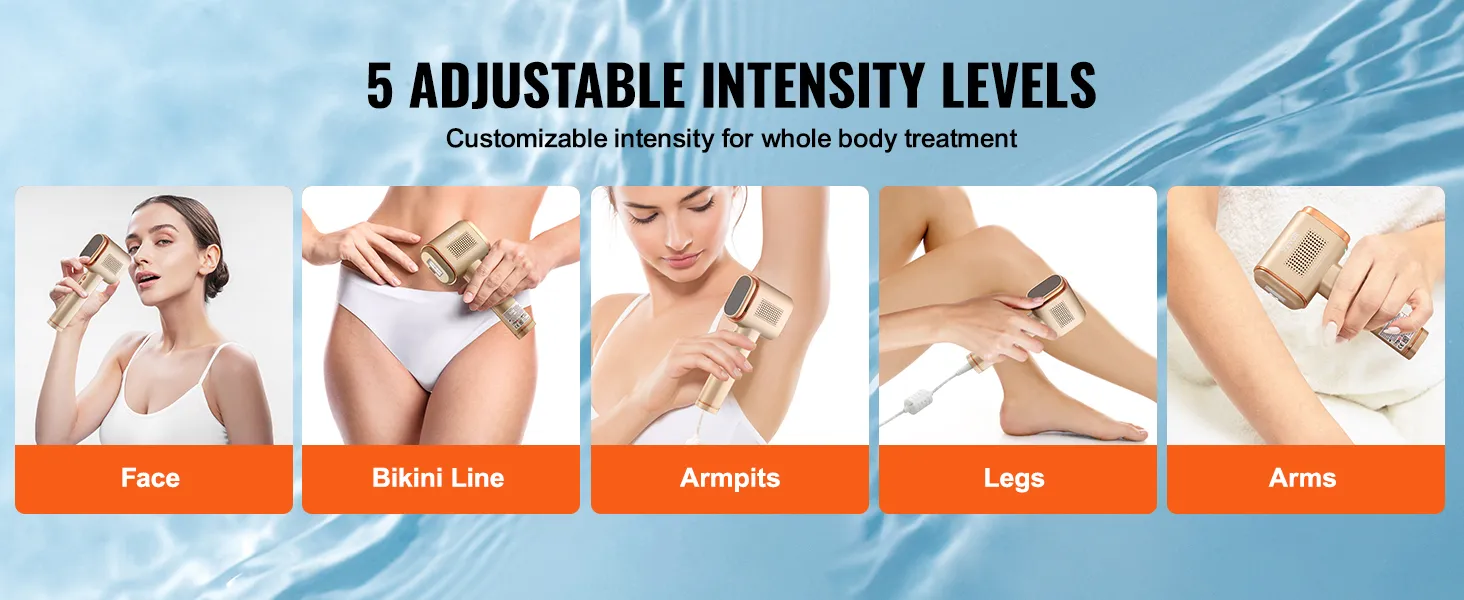 Personalice su experiencia de depilación con nuestro modo dual manual/automático y ajuste de intensidad de 5 niveles. Ya sea que esté apuntando a la línea del bikini, las axilas, las piernas, los brazos o la espalda, nuestro dispositivo de depilación láser permanente IPL logra precisión y comodidad en cada área.