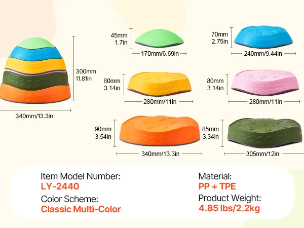 Con colores vibrantes, nuestras piedras para escalones de equilibrio se adaptan a los gustos de los niños. Las diversas opciones de juego combinan el entrenamiento de acción con los juegos, lo que fomenta el crecimiento integral.