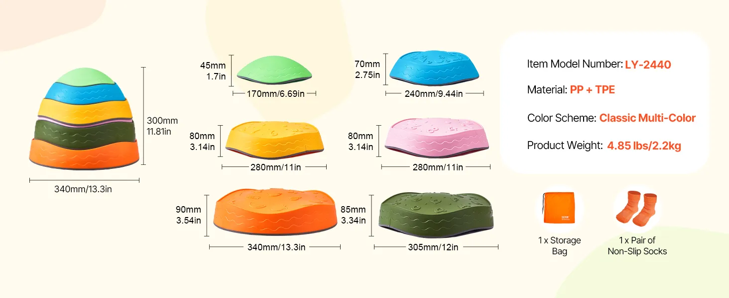 VEVOR - Piedras de equilibrio para niños (6 unidades, hasta 100 kg), antideslizantes, juego de coordinación sensorial para niños pequeños, ideal para interiores y exteriores, para niños de 3, 4, 5, 6, 7 y 8 años en adelante.